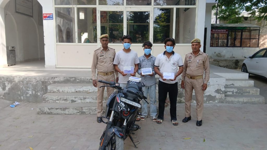 पुलिस अधीक्षक शामली श्री एन.पी. सिंह के निर्देशन में चलाए जा रहे अभियान के तहत कोतवाली पुलिस ने मामले का सफल अनावरण करते हुए नकुल, टिंकू और रजत निवासी ग्राम विलासपुर थाना देवबंद, जनपद सहारनपुर को गिरफ्तार कर लिया।