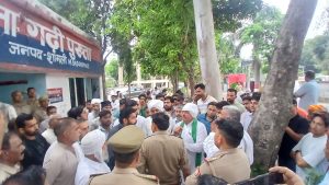 बिना अनुमति अंबेडकर प्रतिमा चबूतरा निर्माण पर विवाद, पुलिस कार्रवाई के बाद थाने पर धरना